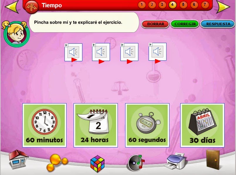 - Luego te explica cuanto dura un día. minuto, hora y mes, y una vez explicado tienes que escuchar los audios y unirlo con las respuesta correcta.